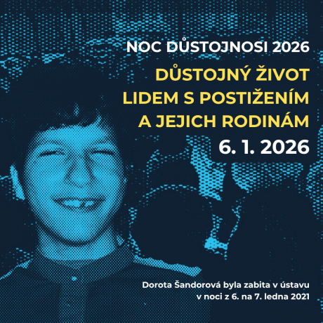 Pietní akce Noc důstojnosti se 6. ledna 2026 opět uskuteční po celé České republice. Připomene tragický příběh Doroty Šandorové a otevře veřejnou výzvu za důstojný život lidí s intelektovým postižením – letos s jasným poselstvím: ano komunitním službám, ne ústavům.